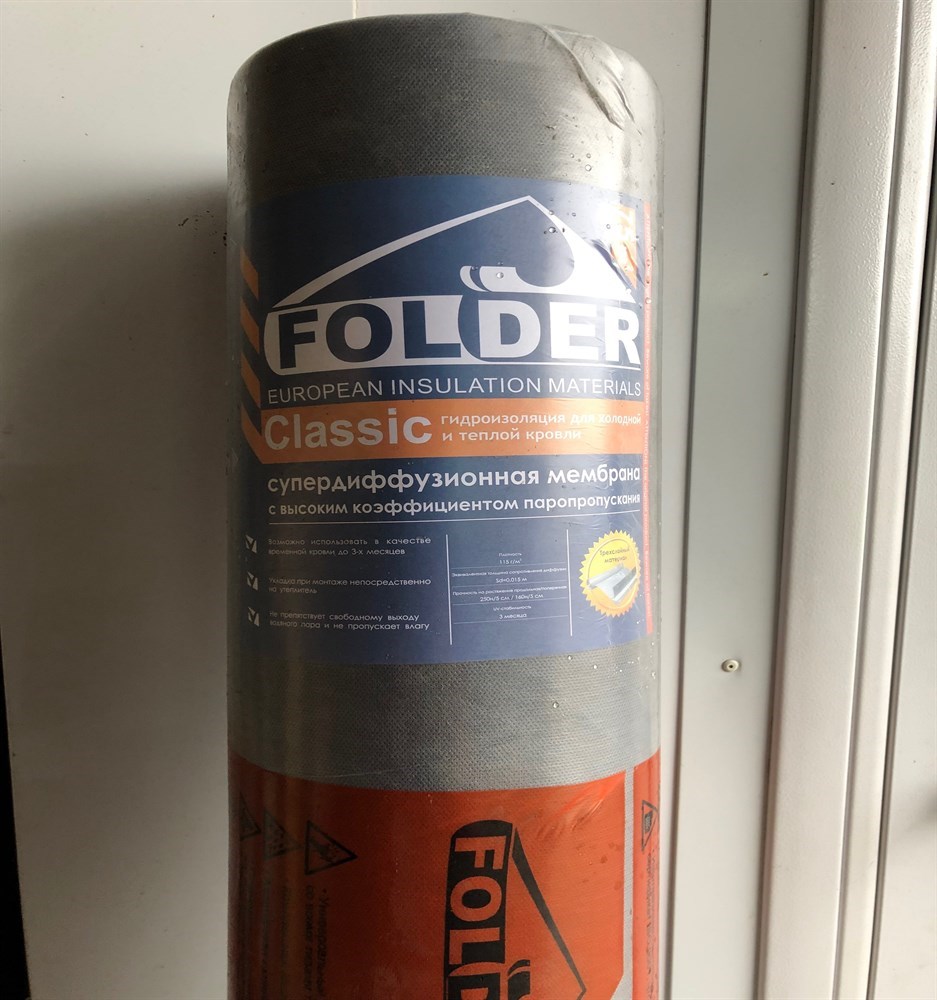 Фолдер Классик 75м2. Folder Classic. Плотность 115м2. С клеевой полоской. Гидроизоляционная мембрана с высоким коэффицентом паропропускания для теплой и холодной кровли. Трехслойная гидроизоляционная мембрана , обеспечивает естественную вентиляцию в подкровельном пространстве. Применяется при монтаже теплой кровли, либо мансарды, которую планируется утеплить в дальнейшем.